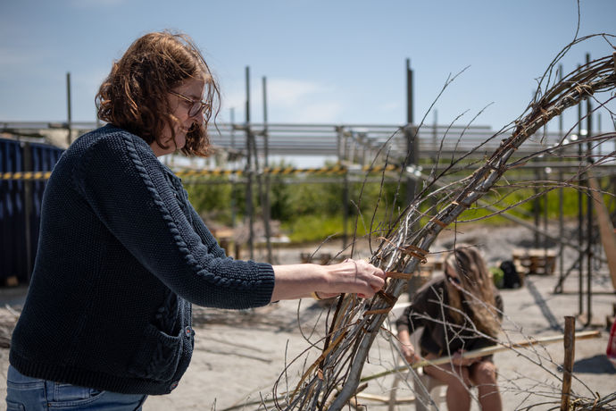 A temporary art site — AnOtherArtSpace — was constructed at the foot of the Sky Tip, transforming a once-extractive location into a space of making, gathering and dialogue. Over several weeks it hosted open workshops in: